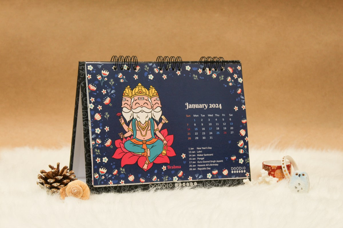 Get Illustrated spiral desk calendar 12 god calendar 2025